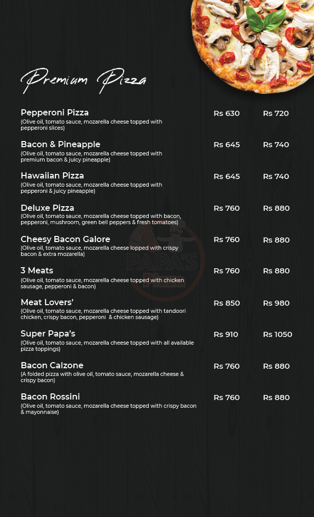 Welcome to Papa's Pizza, a culinary haven where passion and flavor converge. From the moment you step through our doors, you'll be enveloped in an atmosphere of warmth and genuine hospitality. We believe that dining is an art, and every pizza we create is a masterpiece. We meticulously select the freshest ingredients, from locally sourced produce to premium cheeses and meats, ensuring that each bite is a symphony of flavors.